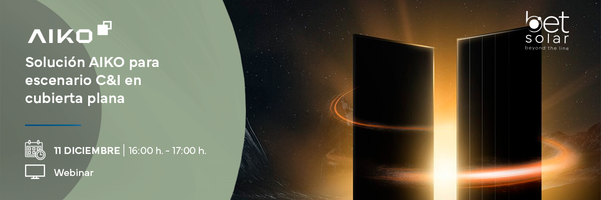 En este Webinar impartido por Bet Solar en colaboración con su proveedor de confianza Aiko se presentarán las últimas tendencias del fabricante Asiático en módulos de alta eficiencia para el mercado comercial/Industrial.